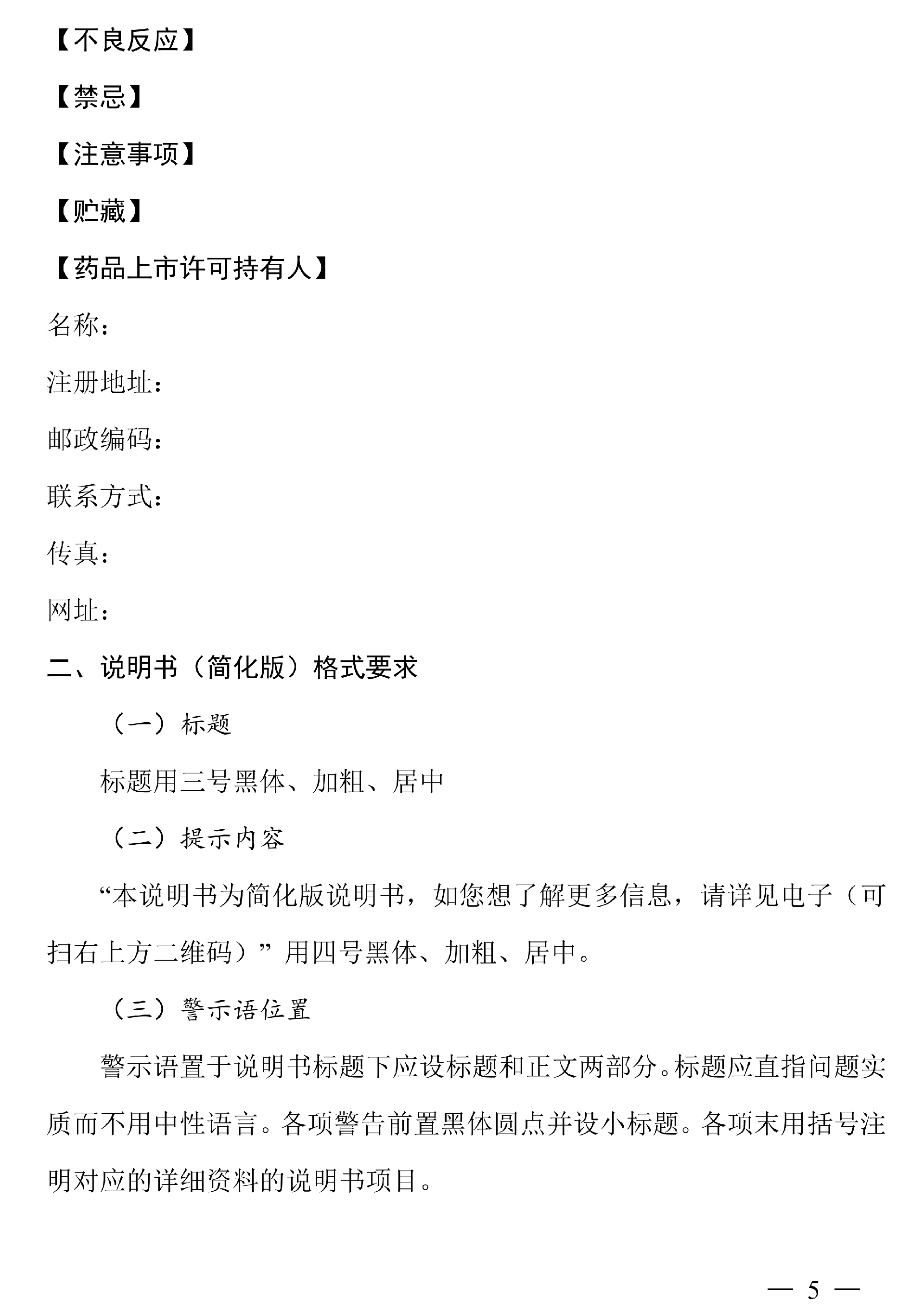 4、持有人按照《藥品說明書(簡化版)及藥品說明書(大字版)編寫指南》編制藥品說明書(簡化版)、藥品說明書(大字版),并對其真實性、準確性承擔全部責任。藥品說明書(簡化版)和藥品說明書(大字版)應當清晰易辨,方便老年人、盲人和其他有視力障礙患者用藥。